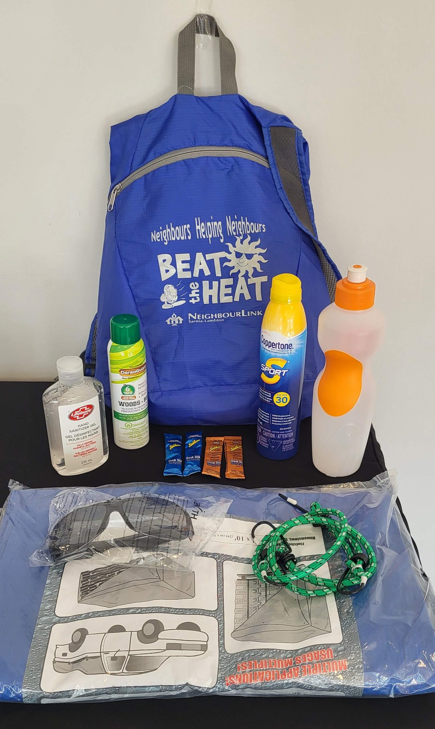 100 summer-themed backpacks filled with items to provide relief during the hottest months.
